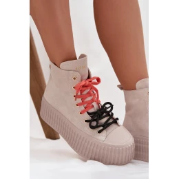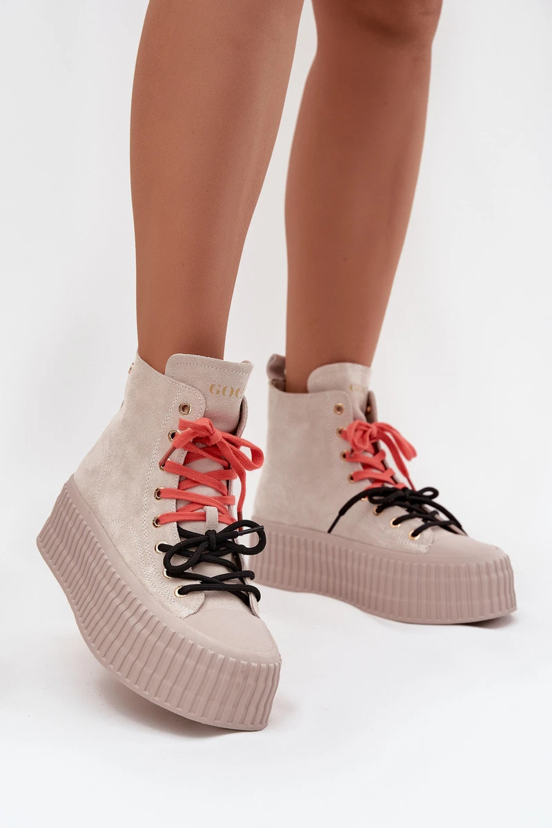 Dámské zateplené semišové trampky na masivní platformě GOE – béžové