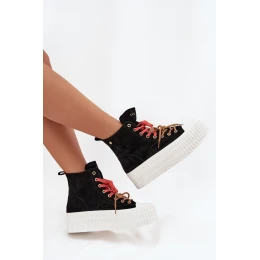 Dámské zateplené semišové trampky na masivní platformě GOE – černé