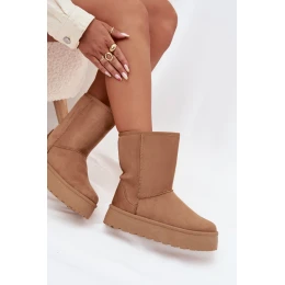 Dámské zateplené sněhule Abrams s kožíškem – camel