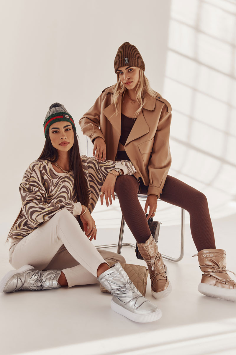 Jedinečné dámské sněhule jsou vyrobeny z vysoce kvalitních materiálů. Mají na dotek příjemnou izolaci v podobě kožešiny. Sněhule mají navíc lem. Vestavěné na masivní platformě. Logo Big Star je na boční straně svršku. Dají se vhodně přizpůsobit šířce nohavic díky lemu v horní části svršku. Vložka je vyrobena z materiálu. Tyto boty mají vyztuženou patu. Při výběru velikosti použijte tabulku velikostí.