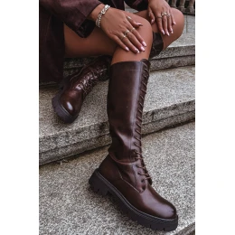 Dámské zateplené šněrovací kozačky Meliora – čokoládové, eko semiš