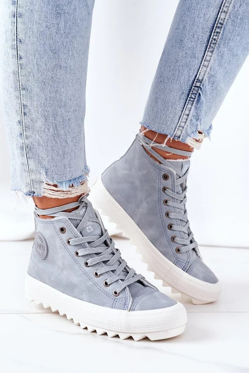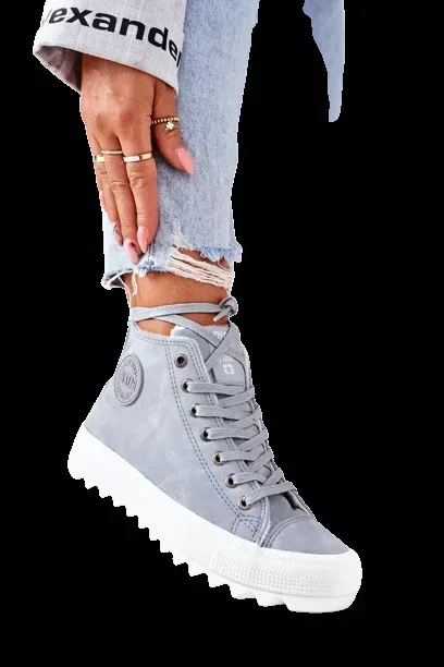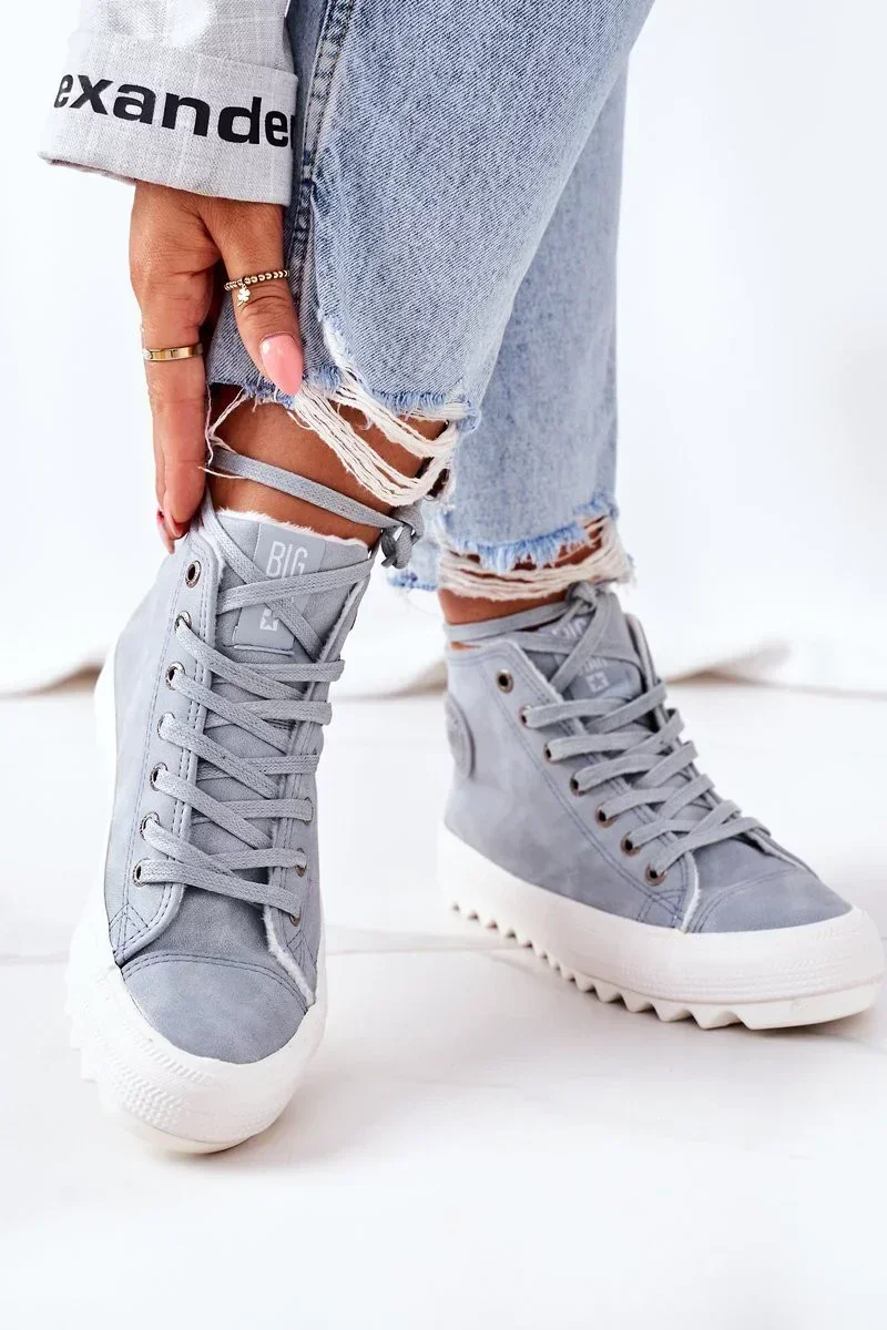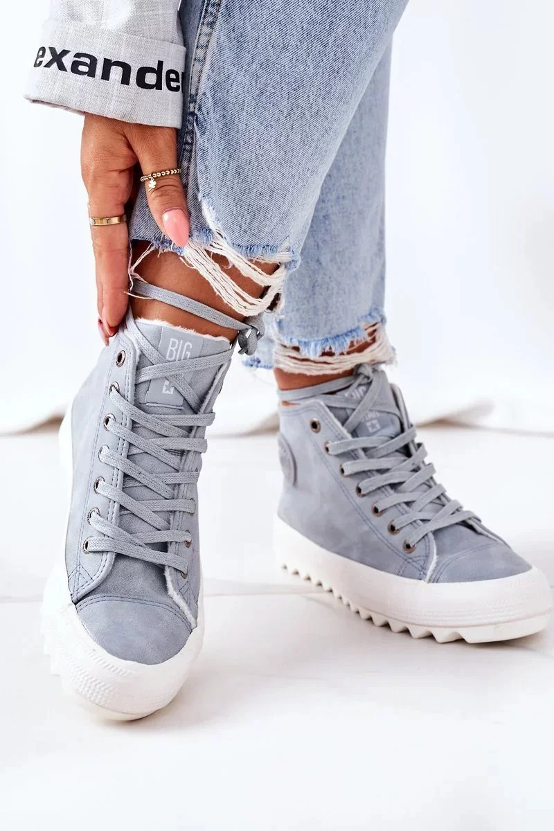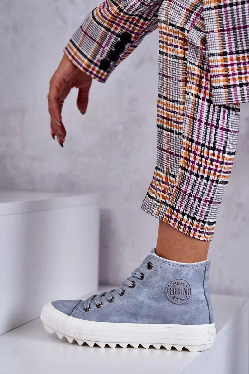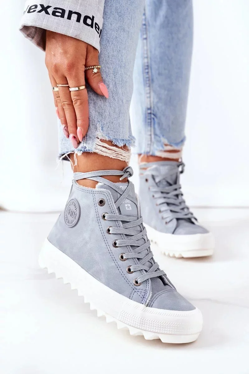 Stylové dámské kožené zateplené tenisky Big Star v jemném světle modrém odstínu spojují moderní design s pohodlím a teplem pro chladnější dny.