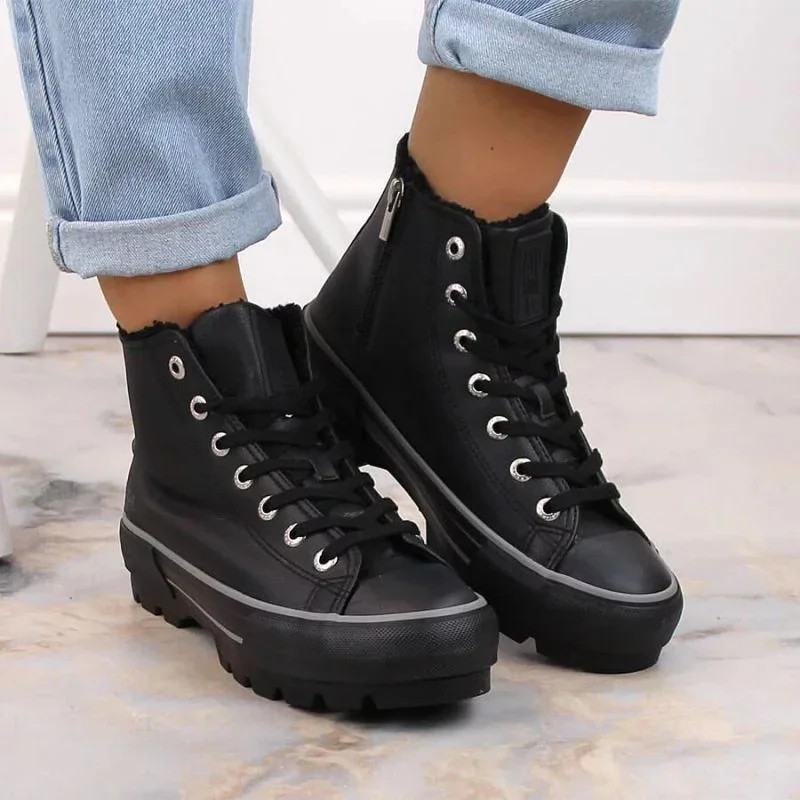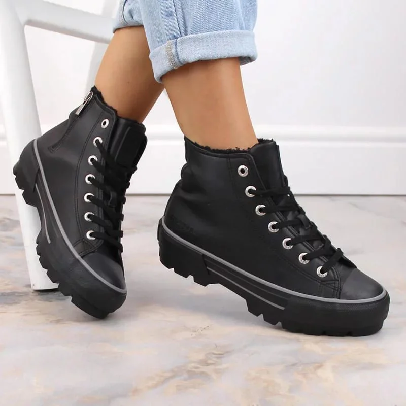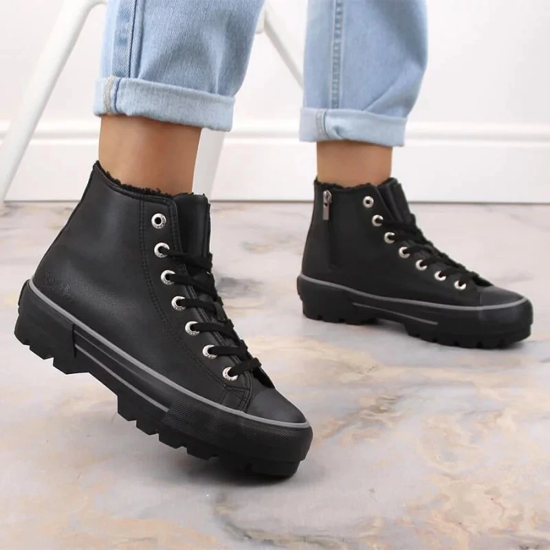 Zateplené Dámské Tenisky Na Platformě Eko Kůže Big Star Černé