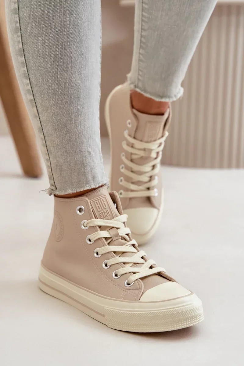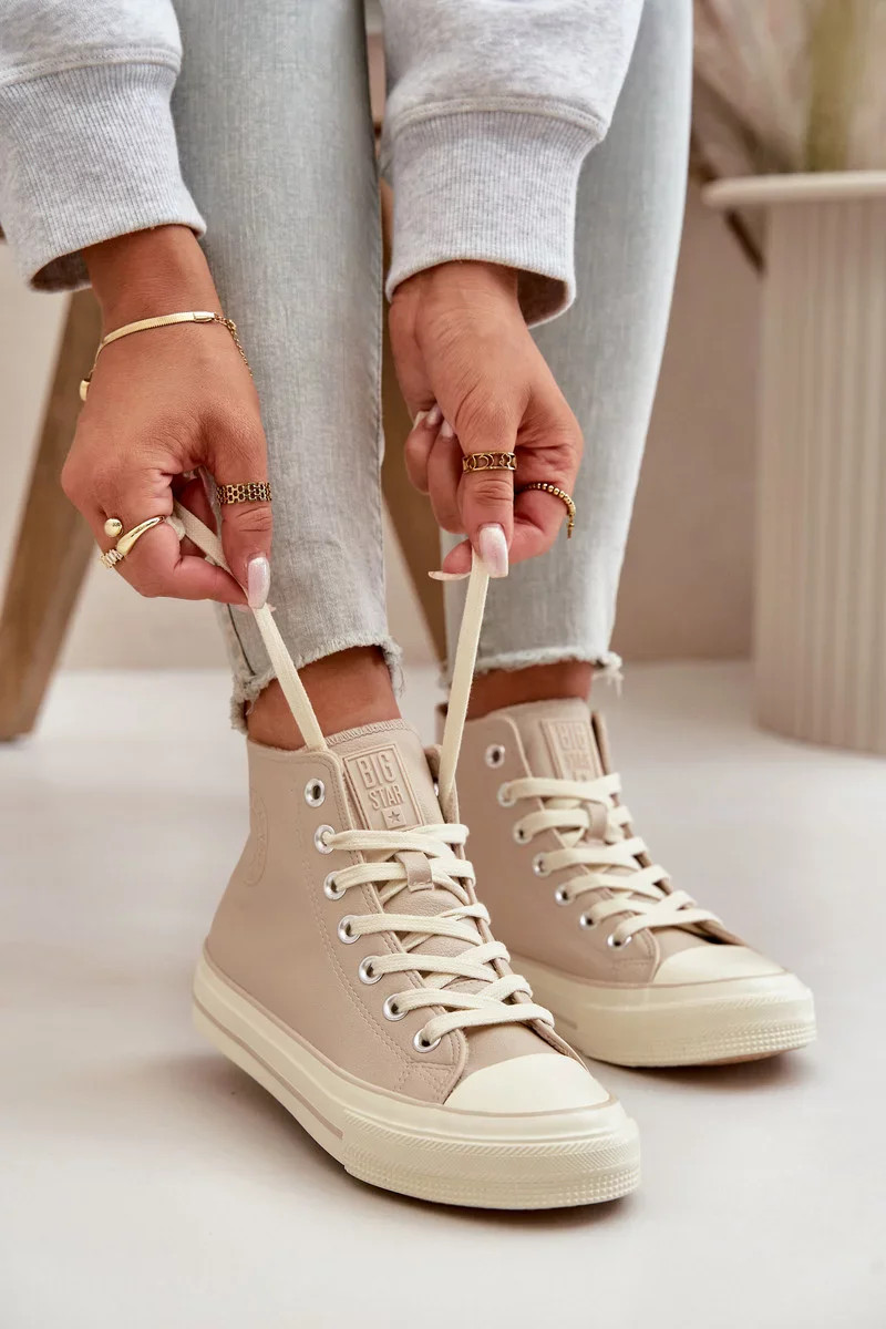 Dámské Zateplené Tenisky z Eko Kůže Béžové Big Star