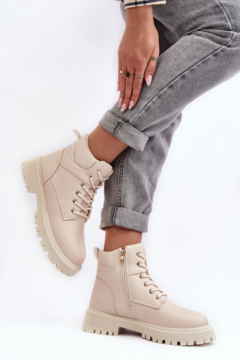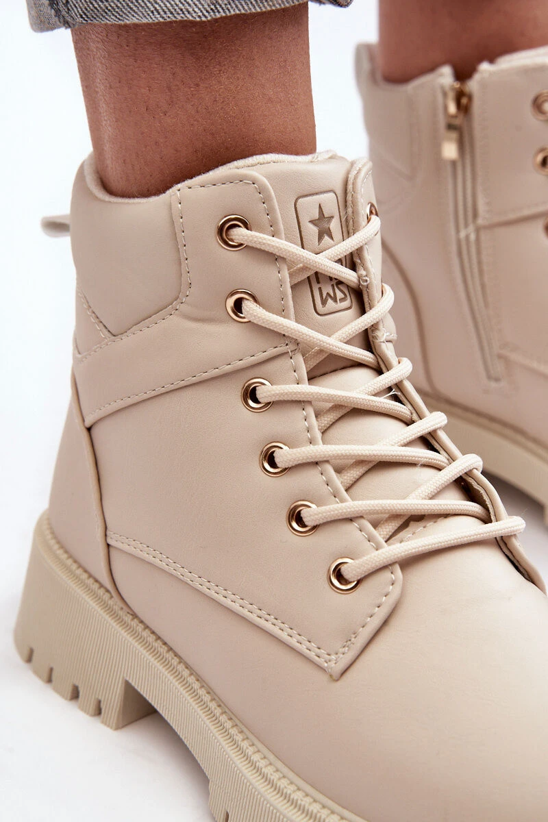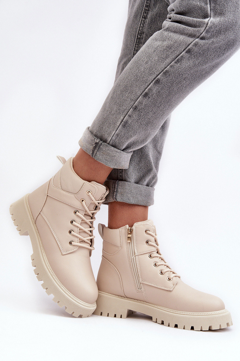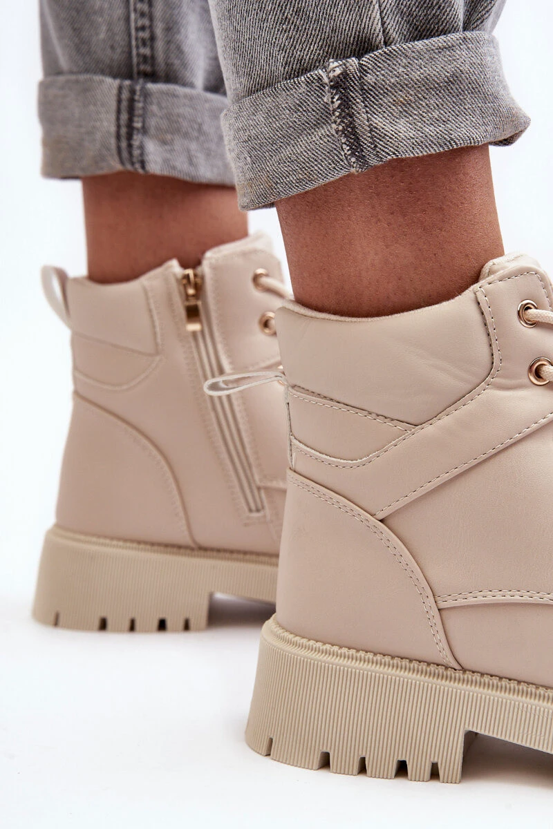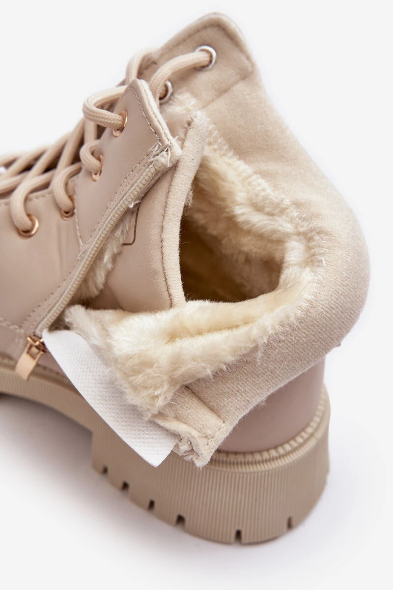 Dámské trekové boty vyrobeny z ekologické kůže. Vnitřek zateplený kožešinou. Upevnění na zip po straně a navíc mají šněrování. Podrážka je vyrobena z gumového materiálu. Vložka je zateplená, měkká a pohodlná. Při výběru velikosti se řiďte tabulkou velikostí.