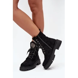 Dámské zateplené workery z eko semiše s bižuterní ozdobou – černé Miryssa
