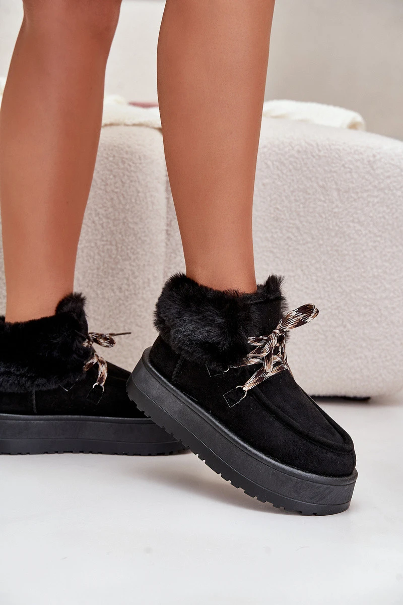 Dámské zavazovací sněžky s hrubou podrážkou černé Loso