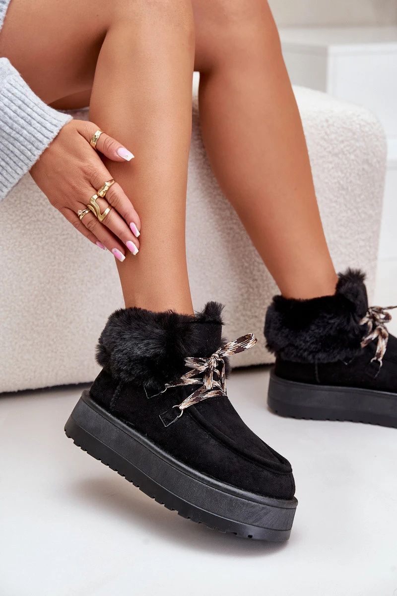 Dámské sněhule vyrobené z eko semiše jsou skvělou volbou na zimu, spojující styl s funkčností. Díky platformě získáte několik centimetrů navíc a ochráníte nohy před zimou. Boty mají šněrování vpředu, což umožňuje dokonalé přizpůsobení noze, a vnitřní kožíšek zajišťuje tepelný komfort. Tyto stylové boty jsou ideální na zimní procházky a každodenní vycházky v chladných dnech. Při výběru velikosti se řiďte tabulkou velikostí.