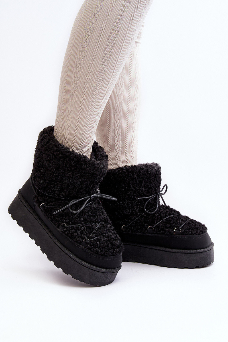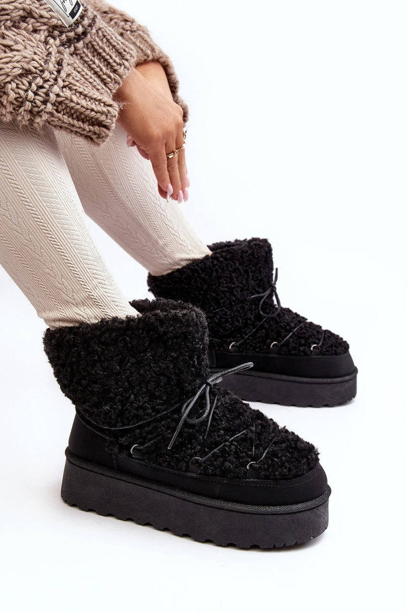 Dámské zavazovací sněžky s hrubou podrážkou černé Loso