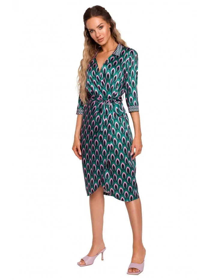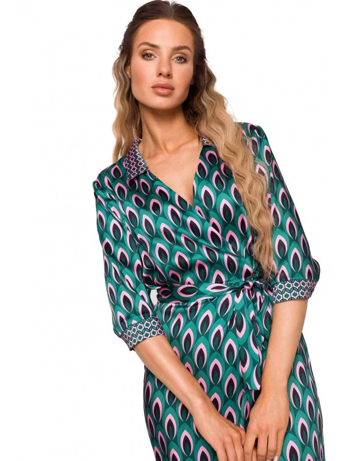 Produkt Dámské zavinovací šaty model 18647106 - Moe prodáváme v těchto velikostech: Ma barvách zelená/růžová5903887663892