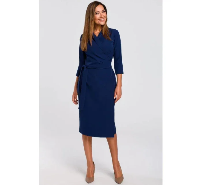 Dámské zavinovací šaty s vázáním S175 tmavě modré - Stylové