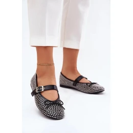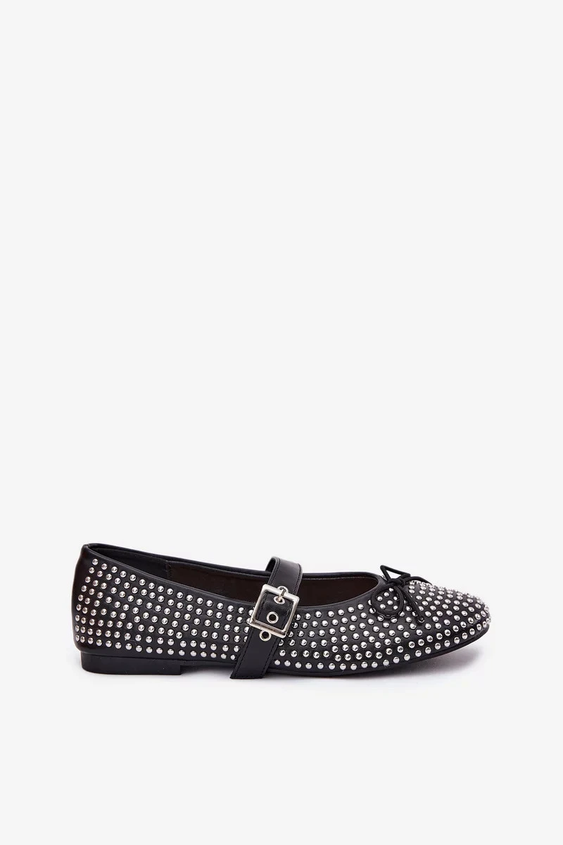 Dámské zdobené baleríny s kokardkou a páskem Zdivisa – černé
