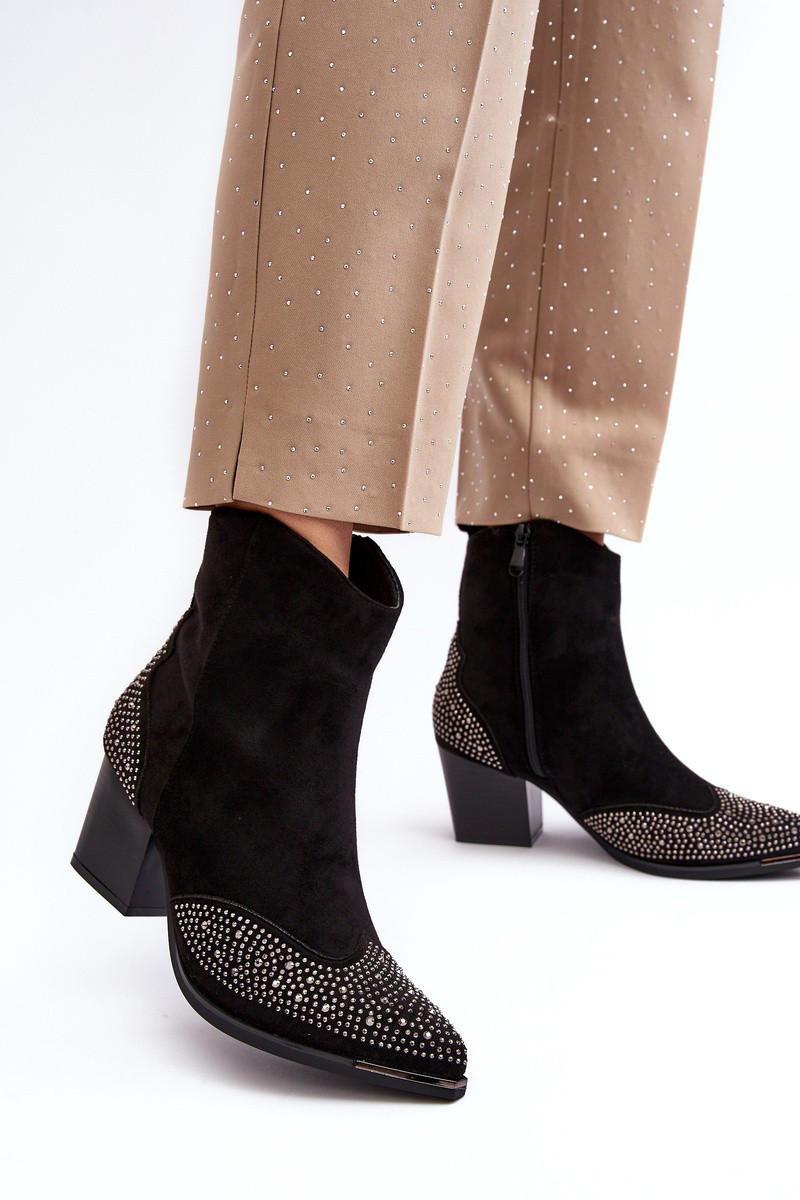 Dámské zdobené kovbojky na sloupku černé model 21638765 - Boto