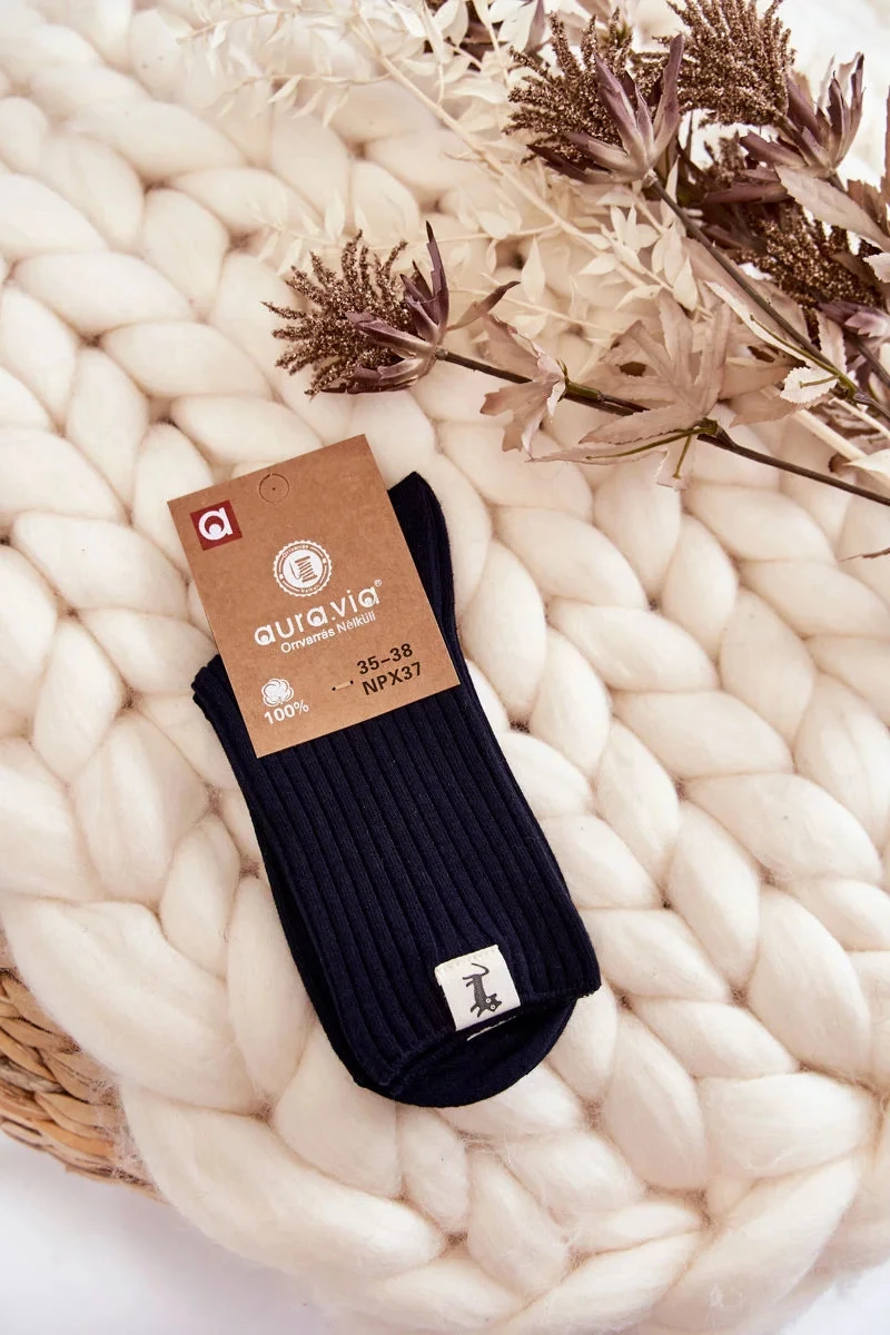 Dámské žebrované ponožky bez tlaku námořnická modrá