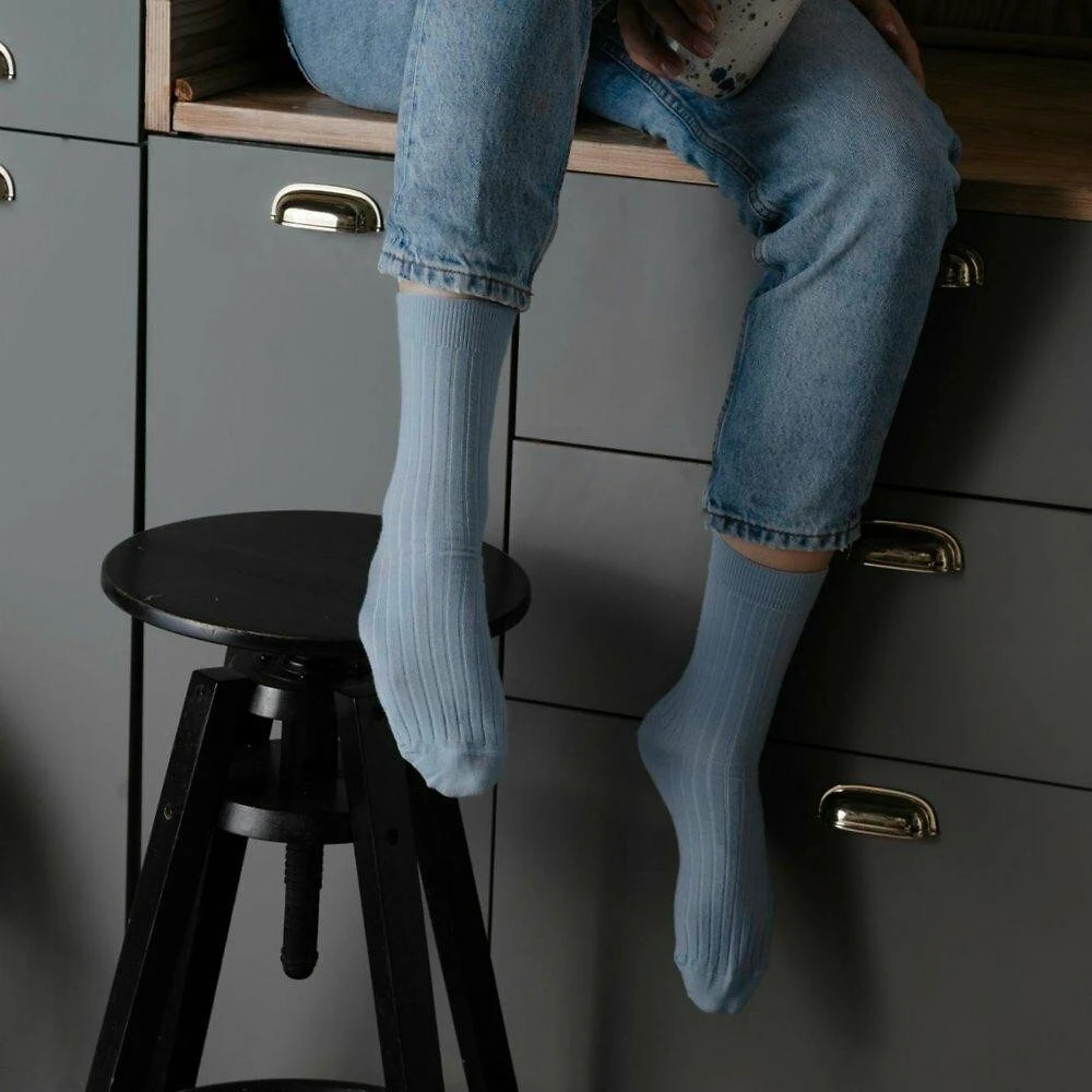 Ponožky jsou jemně žebrované, bezešvé a mají lem, který při nošení netlačí.