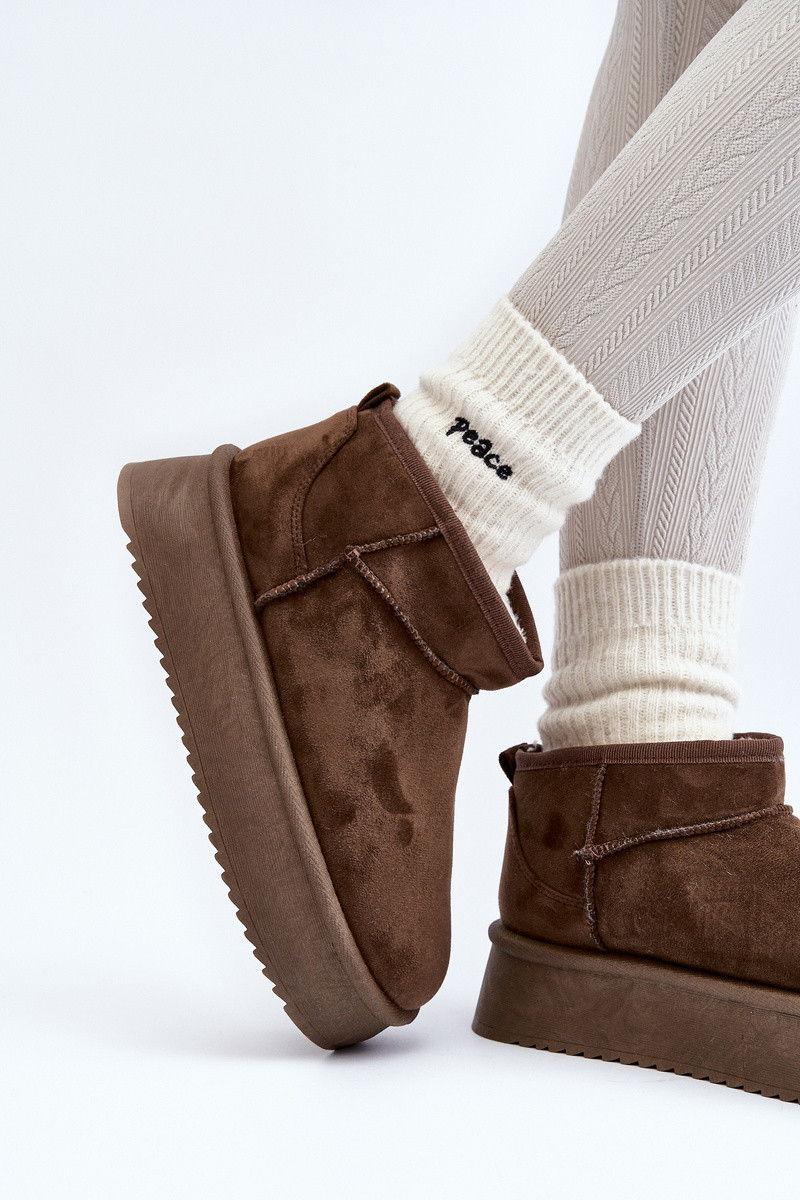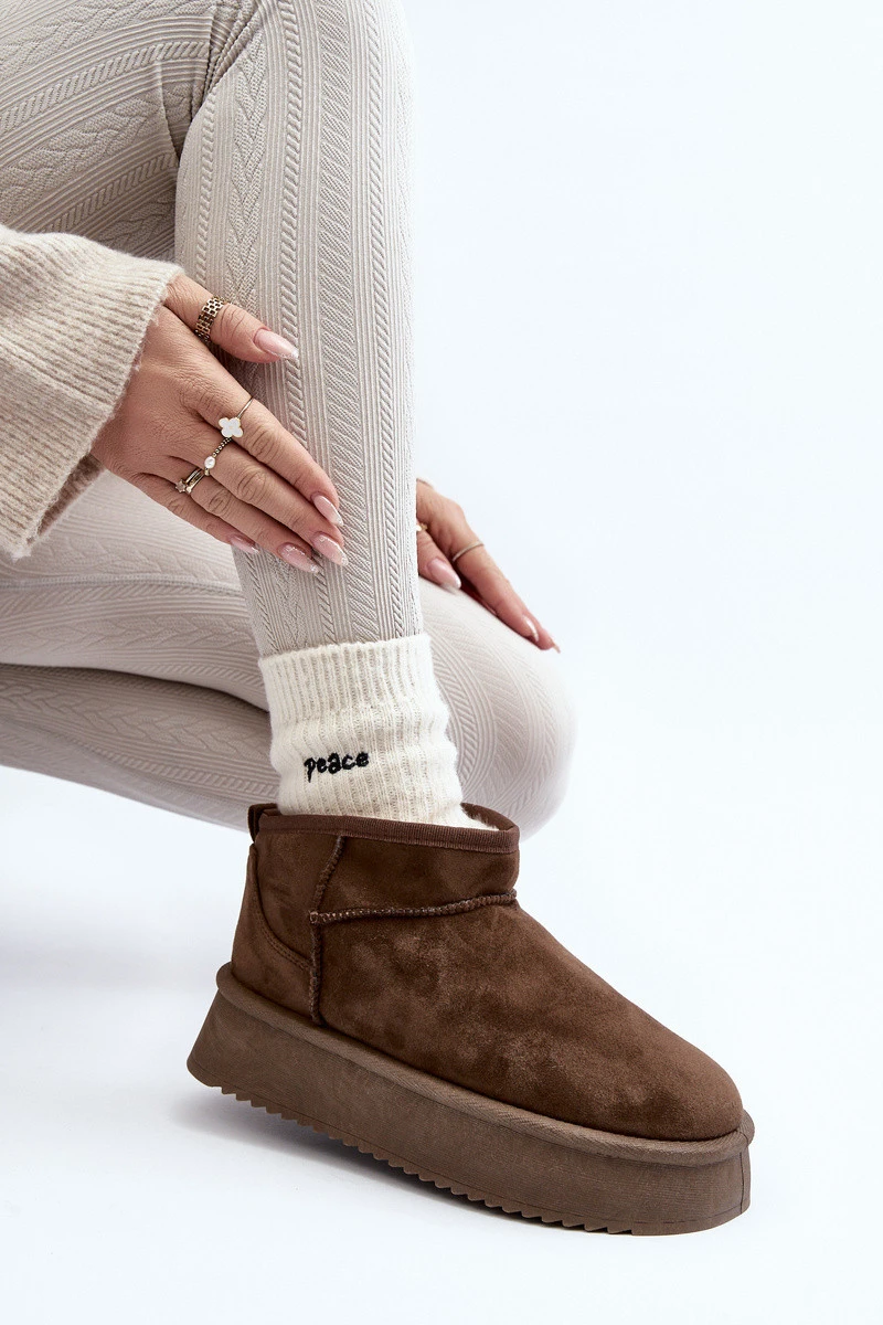Módní dámské sněhule vyrobené z ekologického semiše. Vsazené na masivní platformě z pryžového materiálu. Svrchní část nad kotníkem. Uvnitř vyloženo tlustým kožešinovým materiálem. Určitě je musíte mít! Při výběru velikosti se řiďte tabulkou velikostí.