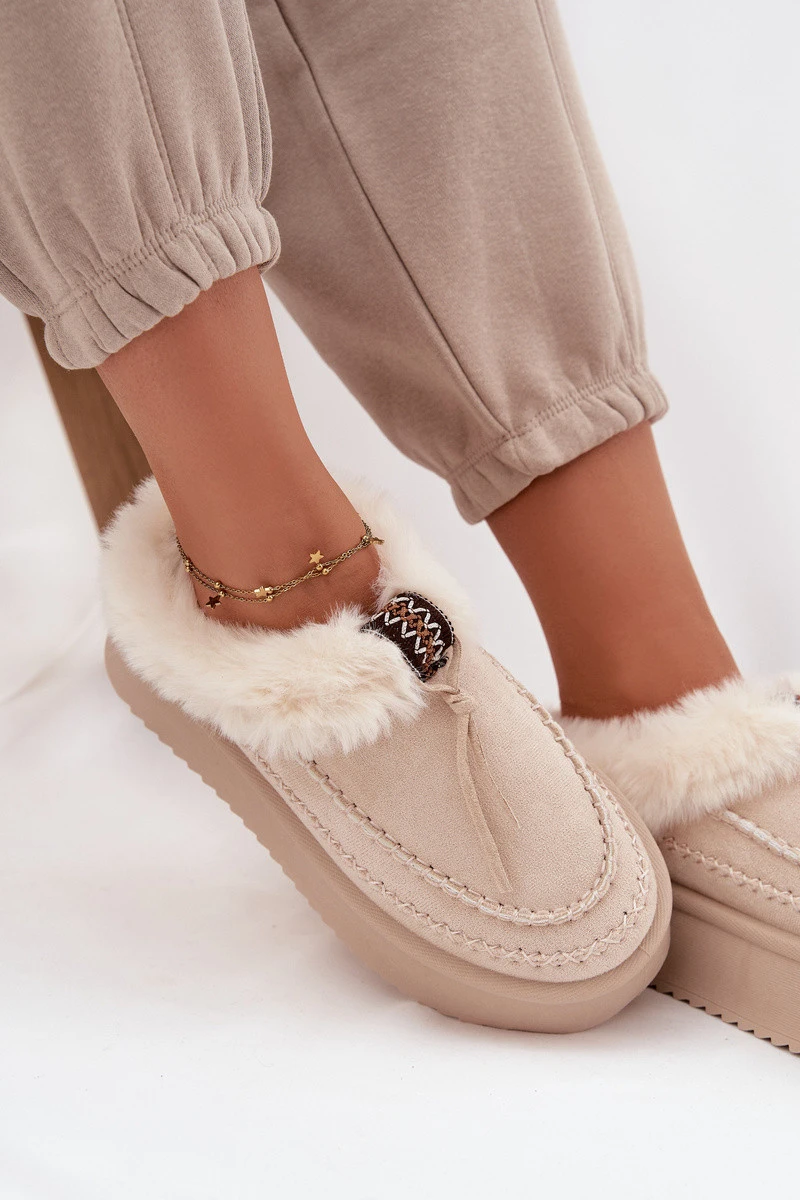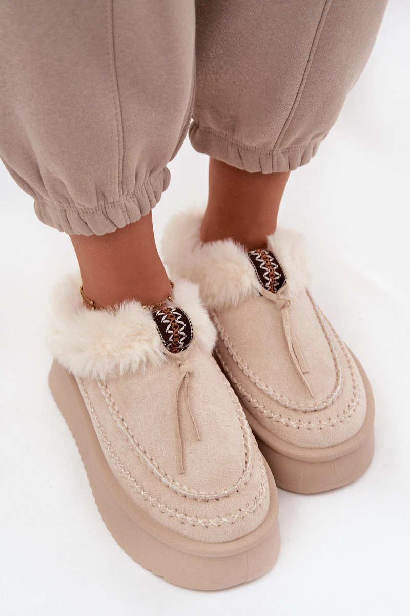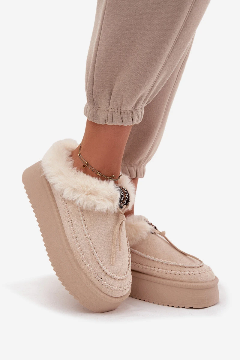 Dámské zimní boty s kožíškem na platformě béžové model 21714853 - Boto