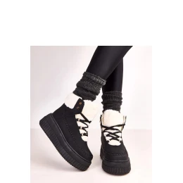 Dámské zimní boty s kožíškem ZH15 Černá s bílou - Next Step