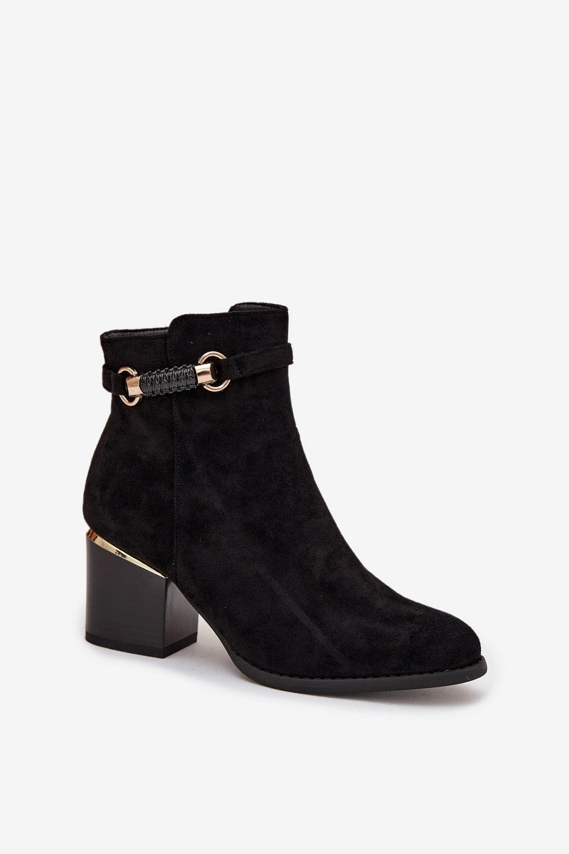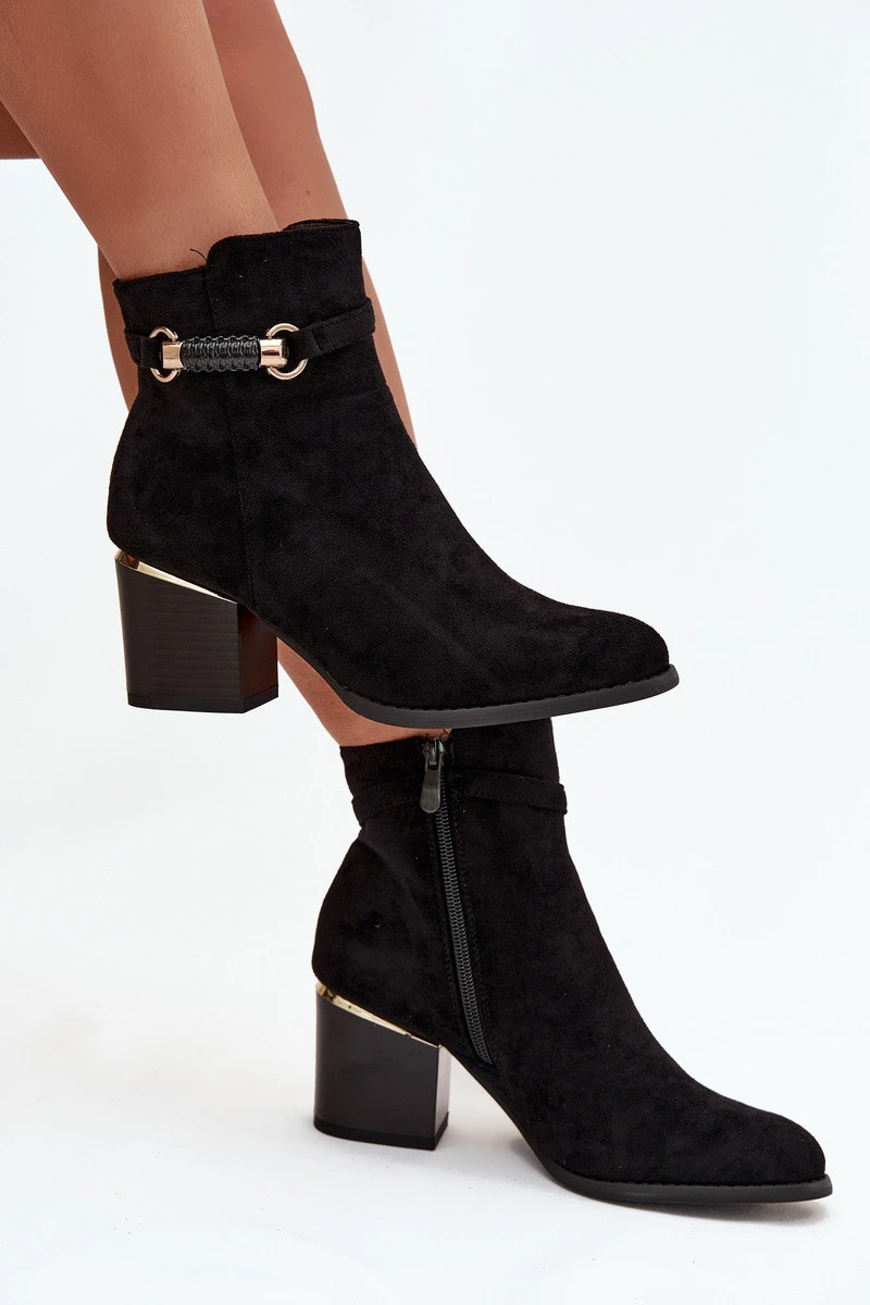 Dámské zimní kozačky na podpatku s ozdobným páskem Černé model 21711606 - Boto