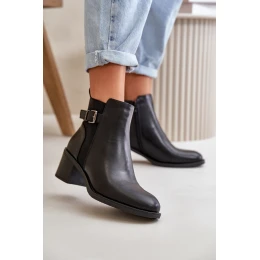 Dámské zimní zateplené boty na podpatku s přezkou Černé model 21667453 - Boto
