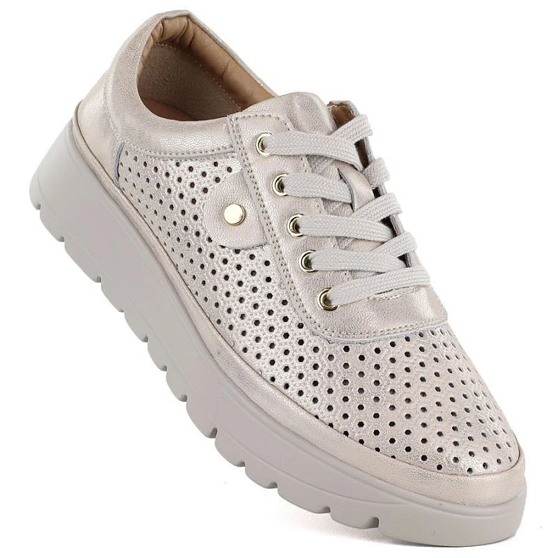 Přidání recenze k Dámské zlaté prolamované kožené polobotky Vinceza 79629
