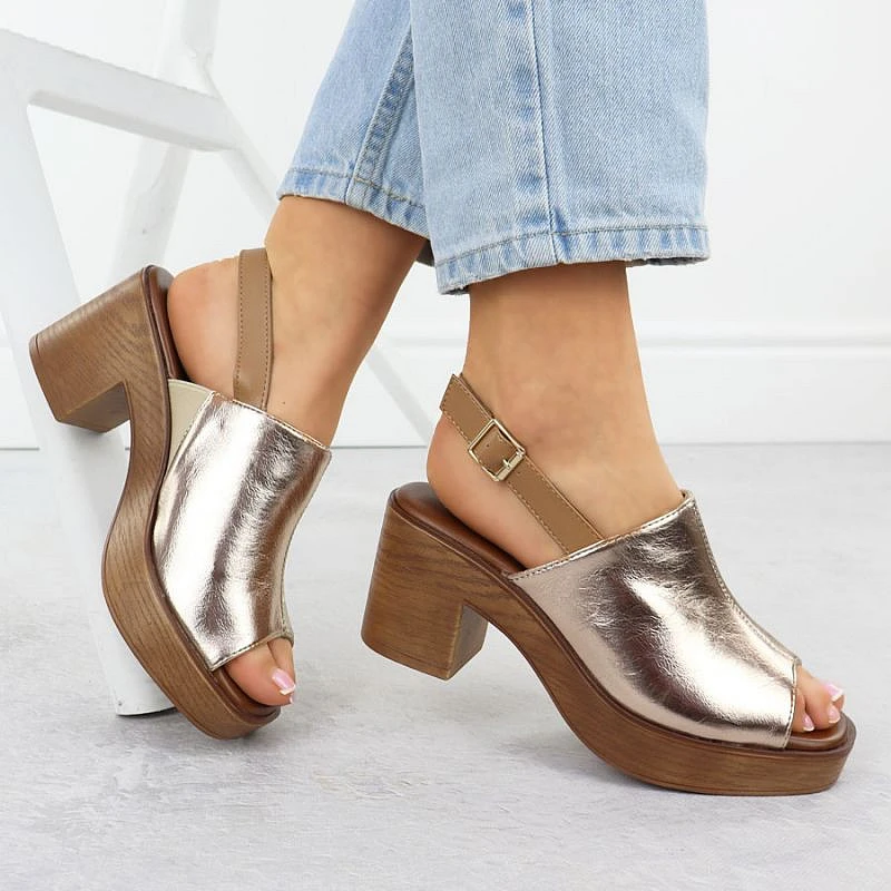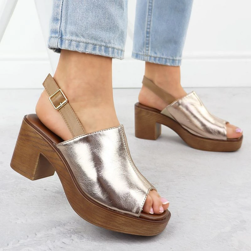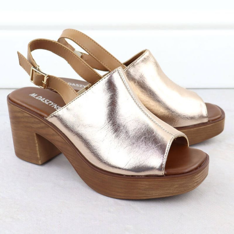 Dámské zlaté sandály na jehlovém podpatku M.Daszynski model 22051585 - M. Daszyński