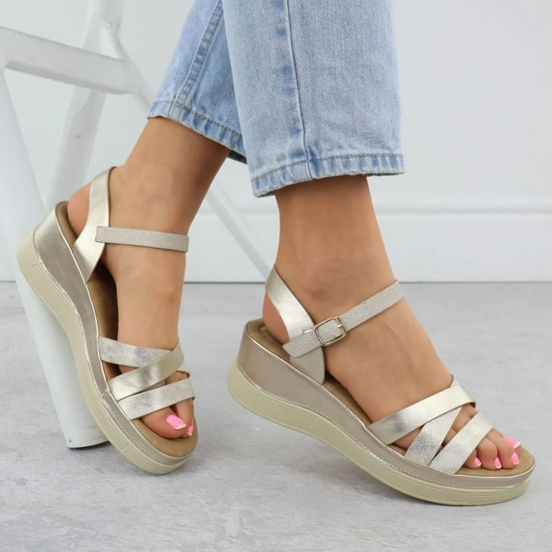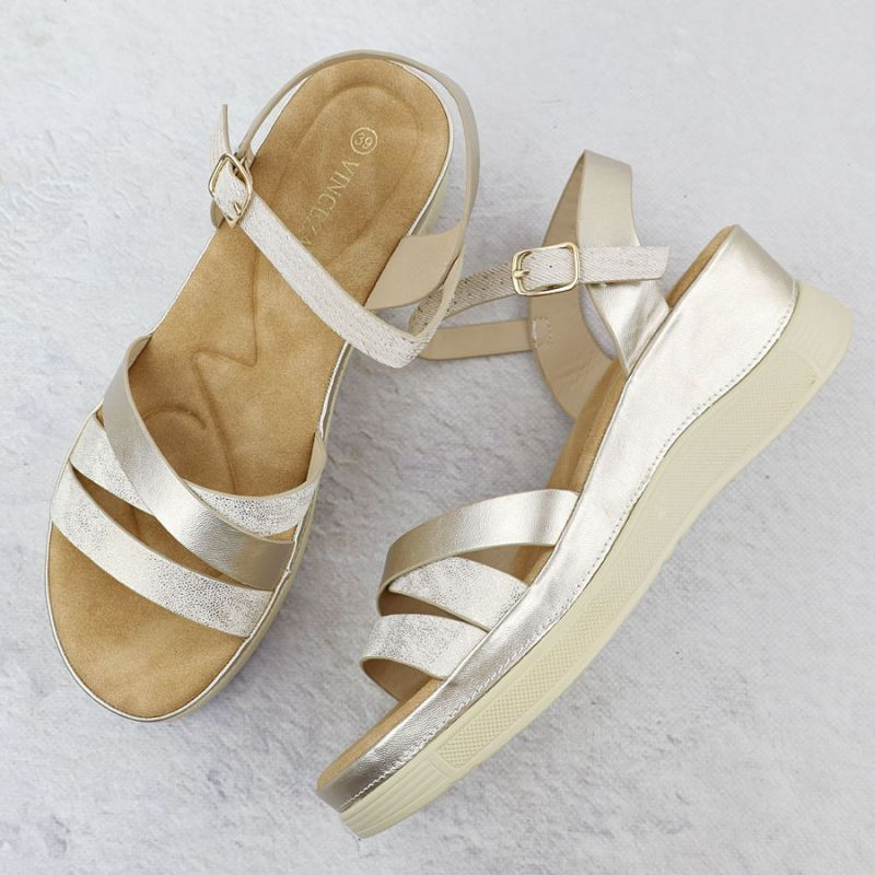 Dámské zlaté sandály na podpatku Vinceza 15358