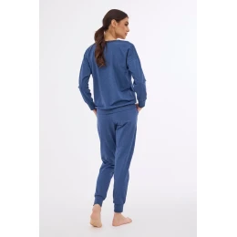 Dámská tepláková souprava z melanžového úpletu s dlouhými rukávy a dlouhými nohavicemi s kapsami. výstřih, manžety a spodní část nohavice košile zakončené pohodlnou šňůrkou.