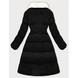 - Futrzany panel przy kołnierzu i wzdłuż guzików
