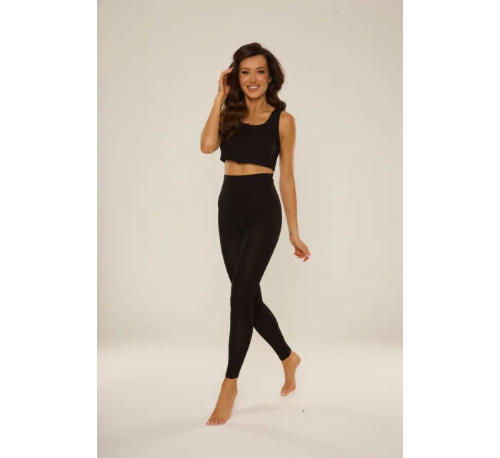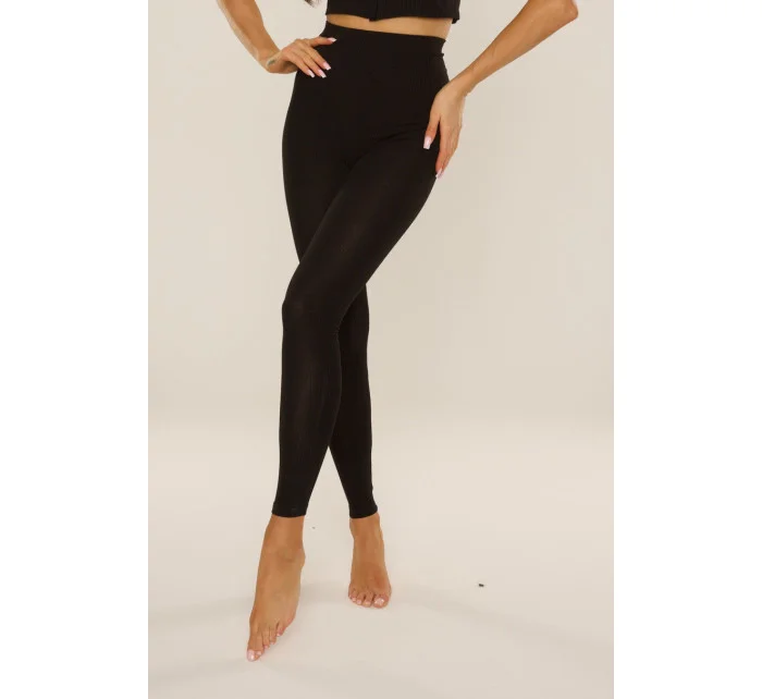 Dlouhé dámské legíny ušité z žebrovaného úpletu s vysokým sedem.