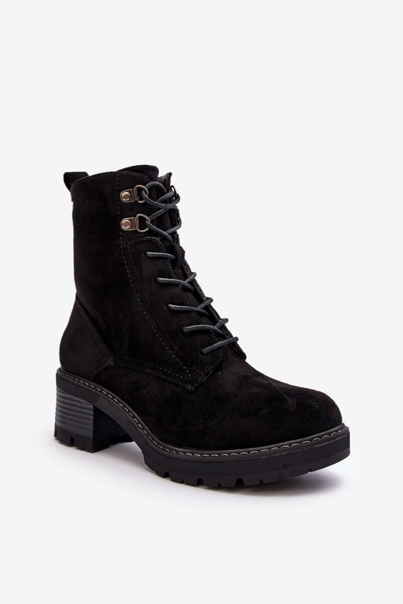 Damskie Botki Na Niskim Obcasie Sznurowane Czarne Adinail