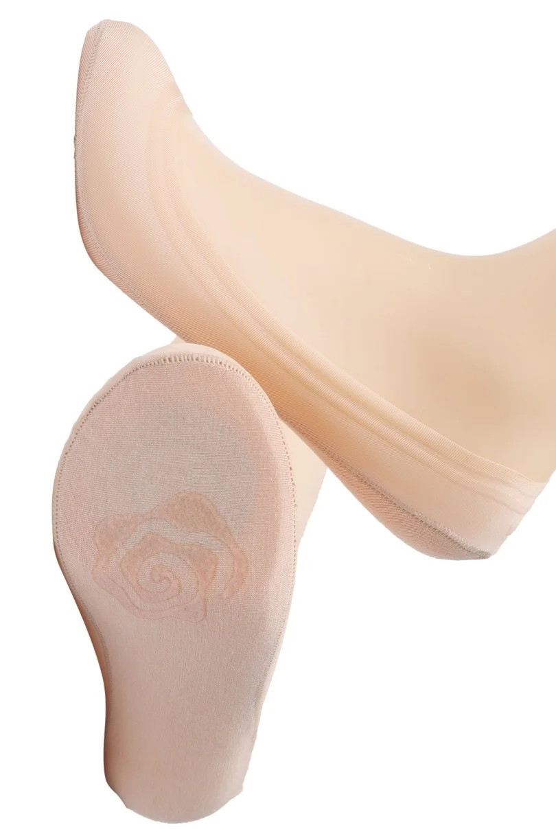 Dámské baleríny se silikonem a ABS. Složení surovin: vrchní část-70 % nylon, 30 % elastan, spodní část-70 % bavlna, 15 % polyester, 15 % elastan.