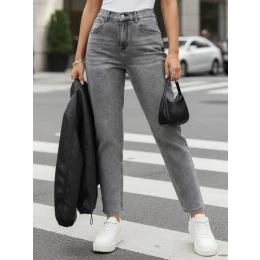 Jeansy damskie mom fit z wysokim stanem UY2890 szare