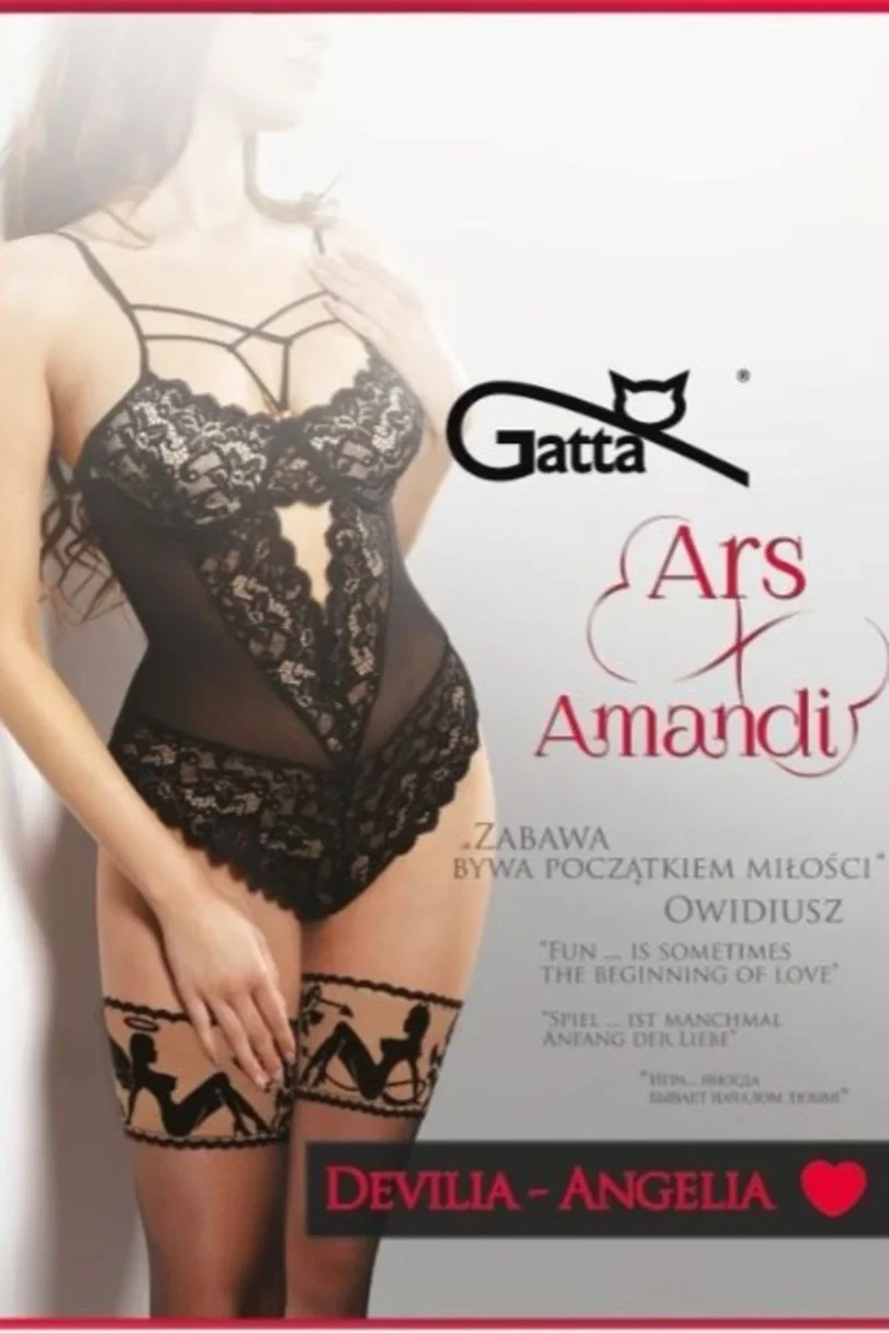 Erotické samodržící punčochy Calze ars Amandi značky Gatta jsou jedinečnou kolekcí smyslných modelů pro zvláštní příležitosti. Sofistikovaným způsobem odhalují svůj erotický charakter, který dodává smyslnost a zvyšuje teplotu v každé ložnici. Punčochy jsou vyrobeny z elastické a průhledné příze LYCRA, která dokonale přilne k tělu a vytváří na svém povrchu jemný, smyslný opar, který jemně obkresluje tvar nohou a opticky je zeštíhluje. Smyslný ozdobný pásek upoutá pozornost a roznítí smysly. Silikonové pásky skryté pod ním zajišťují, že je samonosný a zůstane na místě tak dlouho, jak si budete přát. Návrhy zde uvedené mohou být novou inspirací pro milovníky hry na chytání. Vyvážená kombinace erotických prvků s klasickými punčochami působí provokativně elegantně.