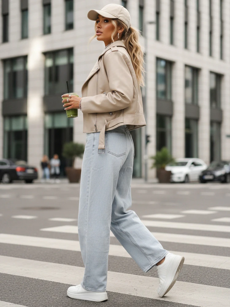 Sprawdzą się w stylizacjach miejskich i casualowych. Można łączyć je z krótkim topem, marynarką, ramoneską lub oversize’ową koszulą. Szeroka nogawka dobrze komponuje się ze sneakersami, platformami oraz sandałami na słupku.