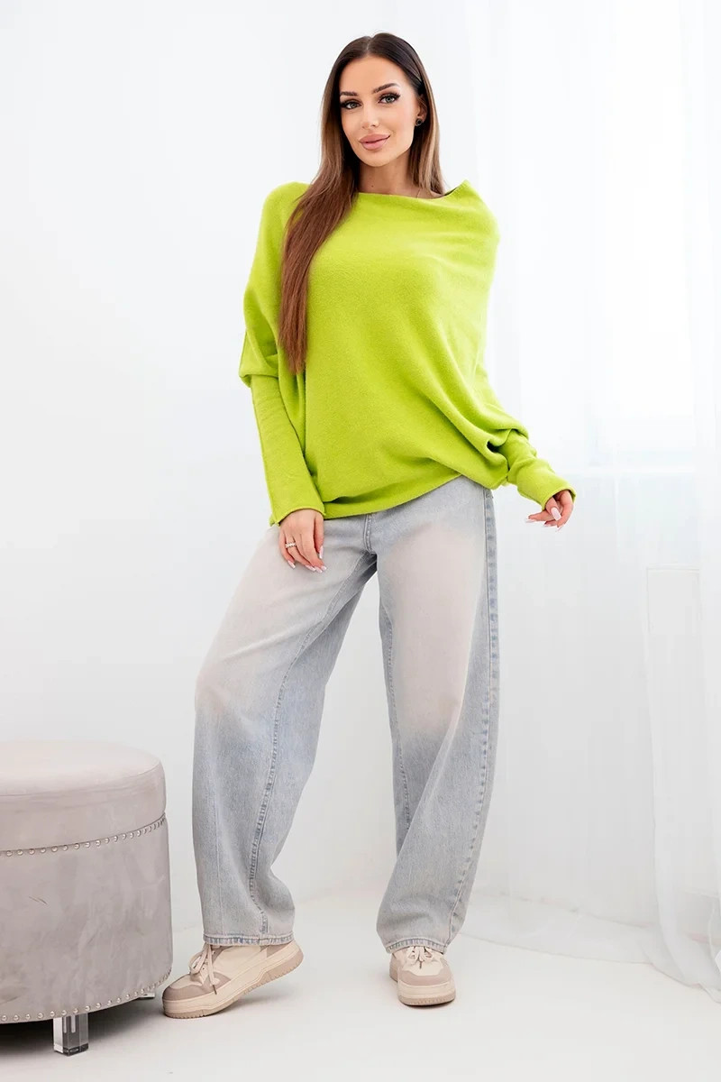 Dámský asymetrický viskózový svetr netopýr pistáciový