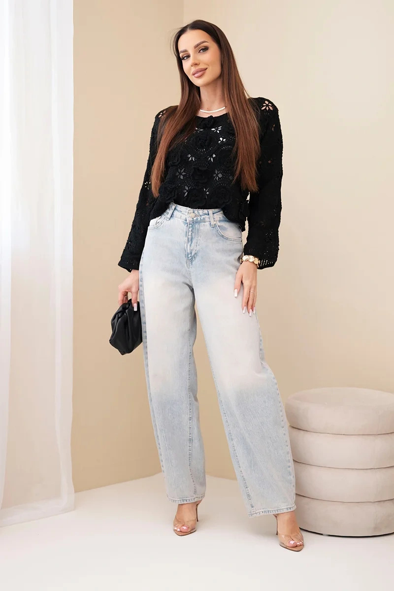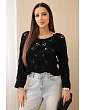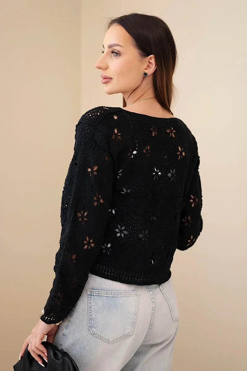Dámský ažurový svetr s květinovým vzorem černý