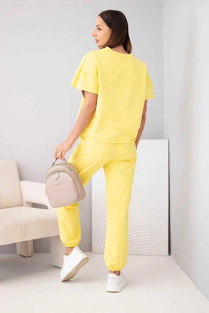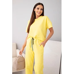 Dámský bavlněný komplet blůzka s krátkým rukávem a teplákové kalhoty žlutý