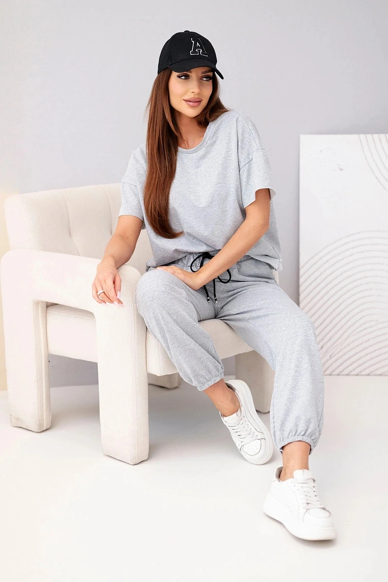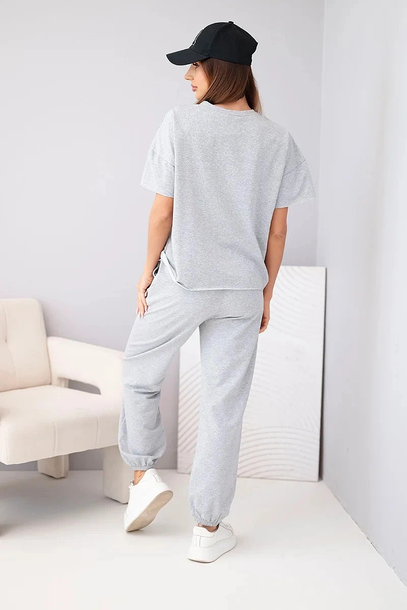 Dámský bavlněný komplet halenka krátký rukáv a teplákové kalhoty šedý