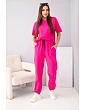 Dámská souprava tričko s krátkým rukávem a teplákové kalhoty je ideální nabídka pro ženy, které si cení pohodlí a módního sportovního stylu. Vyrobená z vysoce kvalitní bavlny s příměsí elastanu zajišťuje vynikající prodyšnost a pohodlí při nošení po celý den. Tričko volnějšího střihu a s krátkým rukávem se skvěle přizpůsobí postavě, zaručuje volnost pohybu a casual vzhled. Kalhoty mají elastický pas s možností přizpůsobení, takže se dokonale přizpůsobí postavě. Navíc zúžené nohavice zakončené pružným lemem dodávají celku moderní charakter. Souprava se výborně hodí jak na každodenní nošení, při procházkách, nákupech, tak i v domácím prostředí. Můžete ji nosit jako komplet nebo kombinovat jednotlivé díly s jiným oblečením a vytvářet různé stylizace. Italská výroba je zárukou kvality a pečlivého provedení.