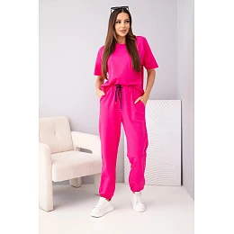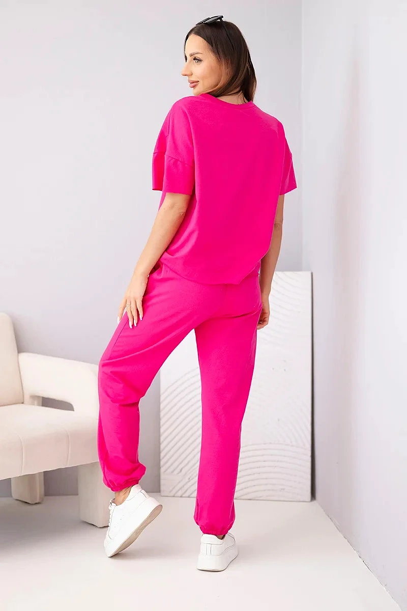 Dámský bavlněný komplet: halenka s krátkým rukávem a teplákové kalhoty fuchsiová