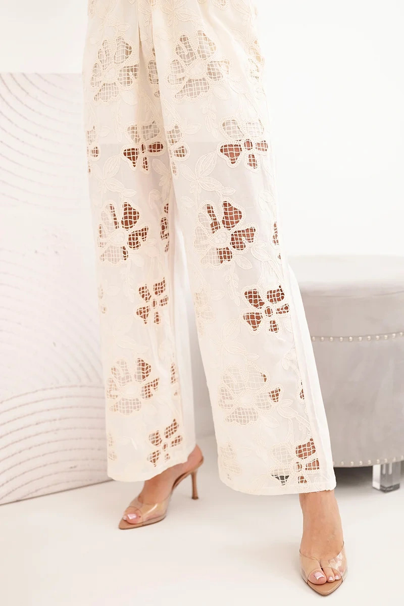 Stylový dámský komplet je výjimečnou nabídkou pro ženy, které si cení módy, pohodlí a přírodních materiálů. Sada se skládá z krátké vesty zapínané na knoflíky a kalhot se širokými nohavicemi, čímž vytváří mimořádně ženský a módní outfit. Celý komplet je zdoben efektním květinovým vyšíváním, které mu dodává elegantní a zároveň romantický charakter.