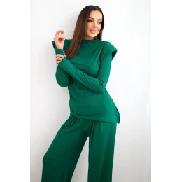 Dámský bavlněný komplet s blůzkou a kalhotami širokého střihu zelený