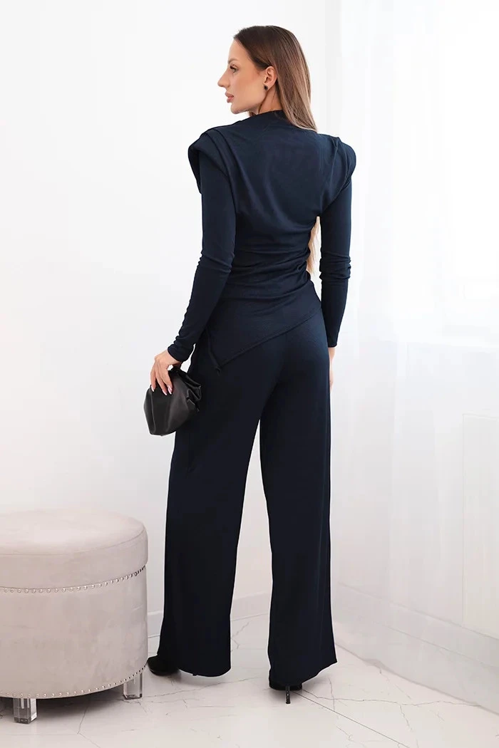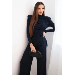 Tento dámský bavlněný komplet s tričkem a kalhotami s širokým střihem je ideální volbou pro ženy, které si cení pohodlí a módního, minimalistického stylu. Vyrobený z elastického, žebrovaného bavlněného úpletu, skvěle se přizpůsobuje postavě a zajišťuje pohodlí po celý den.