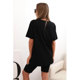 Dámský bavlněný komplet s krátkým rukávem a šortkami černý
