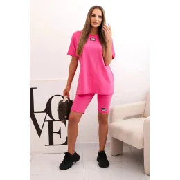 Dámský bavlněný komplet s krátkým rukávem a šortkami růžový