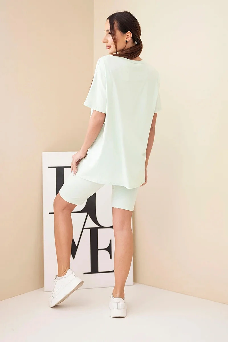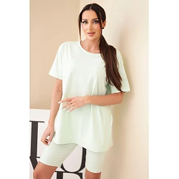 Pohodlný a stylový dámský komplet je ideální volbou pro ženy, které si cení komfortu a módního vzhledu pro každodenní nošení. Sada se skládá z klasického trička s krátkým rukávem a přiléhavých kraťasů, které společně tvoří soudržný a praktický outfit. Minimalistický střih činí komplet velmi univerzálním a snadno kombinovatelným – skvěle poslouží doma, na procházce i během letních dovolených.