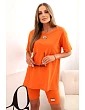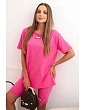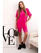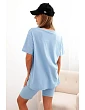 Souprava je ušitá z příjemné bavlny s přídavkem elastanu, což zajišťuje pružnost a pohodlí po celý den. Střih je volný a pohodlný, elastický pas šortek zajišťuje přizpůsobení postavě. Tričko má kulatý výstřih a jednoduchý střih, který se hodí do každého ležérního outfitu. Velikost je univerzální a vhodná pro ženy velikostí S, M nebo L.