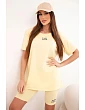 Dámský bavlněný komplet s krátkým rukávem a šortkami žlutý