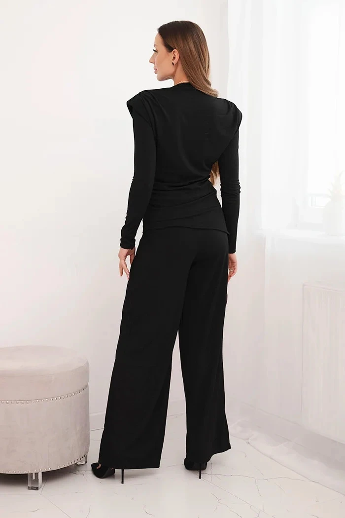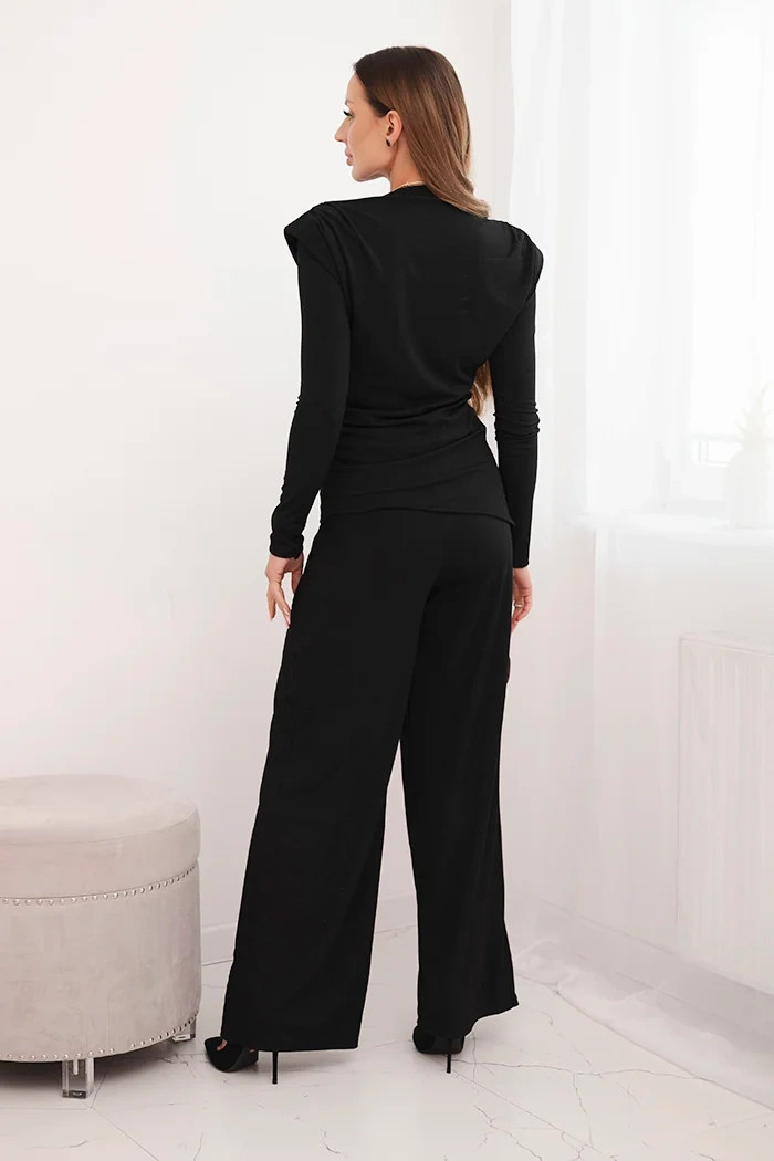 Dámský bavlněný komplet s model 21472121 a širokými kalhotami černý - K-Fashion